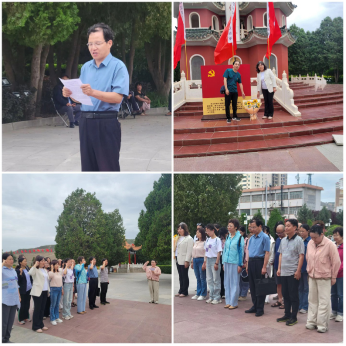 为庆祝中国共产党成立103周年,激励党员群众干事创业热情,推进党纪学习教育走深走实,7月6日,图书馆党总支组织党员、群众和退休职工代表赴甘肃会宁红军长征胜利纪念馆开展“庆七一、忆长征、明党纪”主题党日活动。