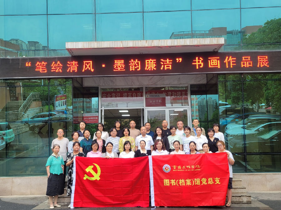 为扎实推进深入贯彻中央八项规定精神学习教育,弘扬廉洁文化,培育清风正气,6月25日上午,图书(档案)馆党总支书记、馆长刘景世带领33名党员及群众代表前往高新校区美术展厅参观“笔绘清风 墨韵廉洁”书画作品展,开展“参观廉政书画展,树立廉洁人生观”主题党日活动。