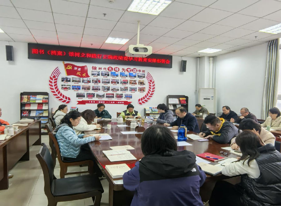3月13日下午,图书(档案)馆在高新校区图书馆501会议室召开树立和践行正确政绩观学习教育安排部署会。党总支书记、馆长刘景世主持会议。